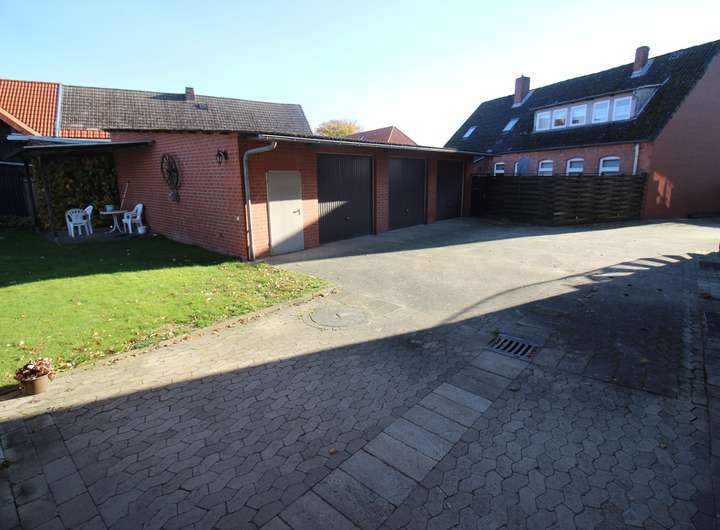 Für Ihre PKW stehen Garagen, eine große Hoffläche und eine große Garagenhalle mit integrierter Werkstatt und Grube bereit.