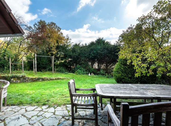 Der liebevoll angelegte Garten mit großer Rasenfläche, zwei Sonnenterrassen und einem kleinen Gartenteich lädt zum Entspannen, Spielen und Genießen ein. Durch die weite Entfernung zum nächsten Nachbarn genießen Sie hier eine außergewöhnliche Privatsphäre.