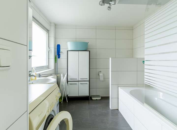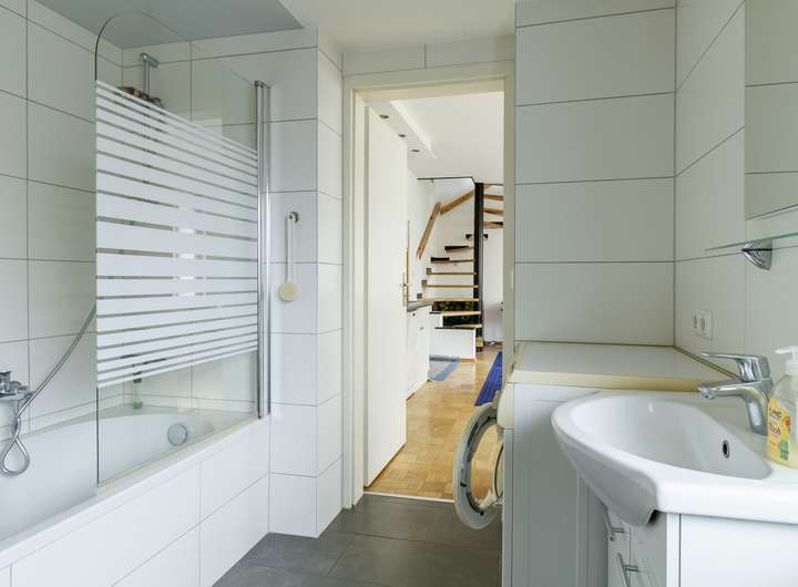 Bäder: Haupthaus: EG: Tgl.-Duschbad, WC, Waschbecken, Zwischengeschoss: Tgl.-WC, Waschbecken, DG: Tgl.-Wannenbad, Dusche, WC, Waschbecken