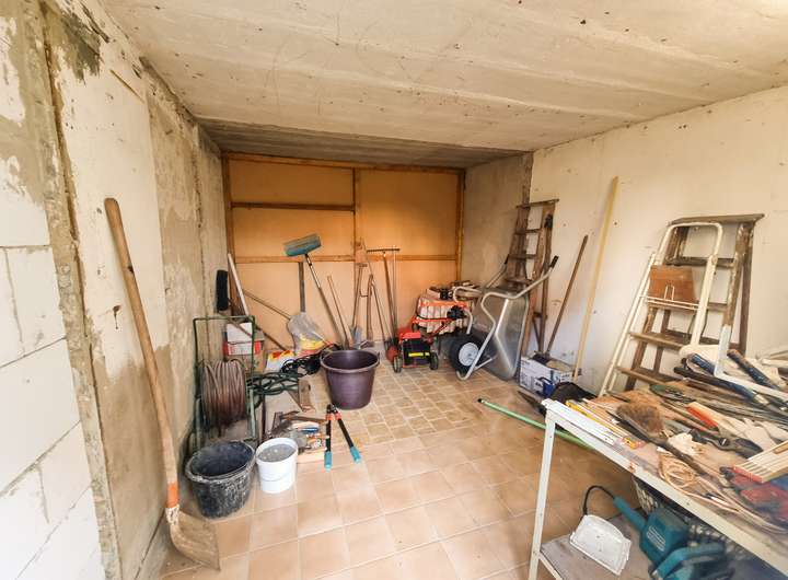 Besonders praktisch: Die Doppelgarage mit zwei angrenzenden großzügigen Räumen, die beispielsweise als Hobbywerkstatt oder zur Lagerung der Gartengeräte genutzt werden können. Vor der Doppelgarage bietet sich eine weitere Abstellmöglichkeit für einen PKW (insgesamt 3 PKW-Stellplätze auf dem Gelände).