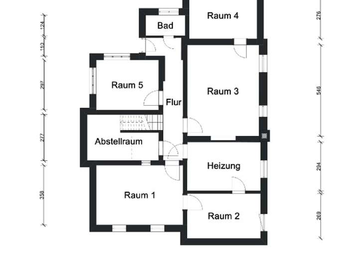 Das Objekt ist vollunterkellert. Dieser Bereich lässt sich sowohl von der innenliegenden Diele sowie über den zusätzlichen Außenzugang begehen.