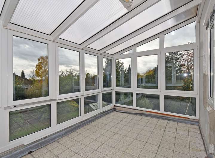 Vom Elternschlafzimmer mit Blick in den Garten ist der Wintergarten zu betreten, der in den 90er Jahren auf den rückwärtigen Erker errichtet wurde.
