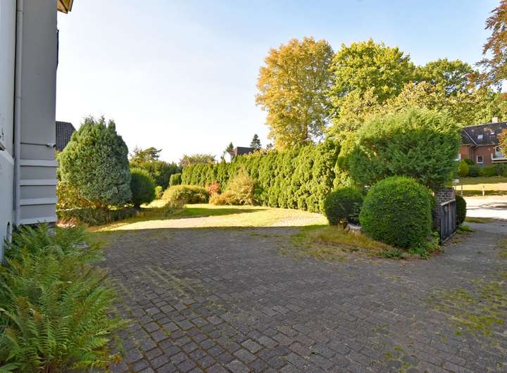 Drei Autos finden problemlos ihren Platz auf dem zur Straße und somit gen Norden gelegenen Hofplatz.