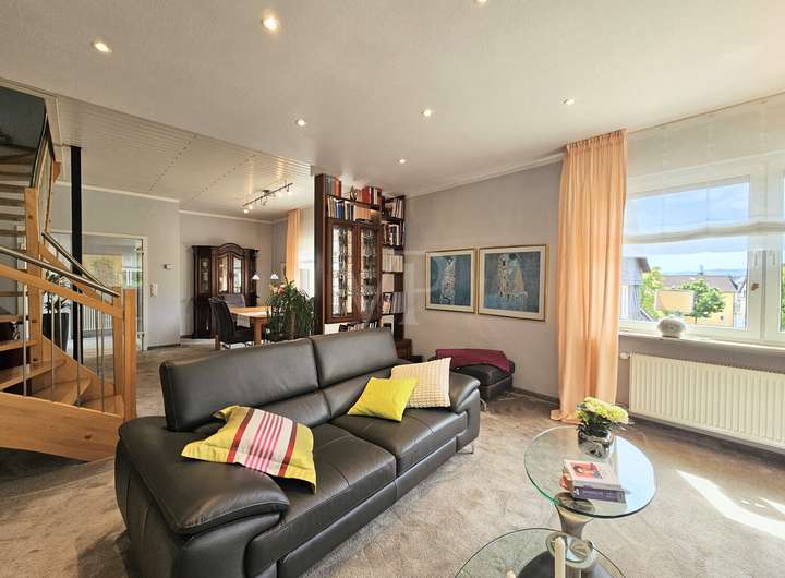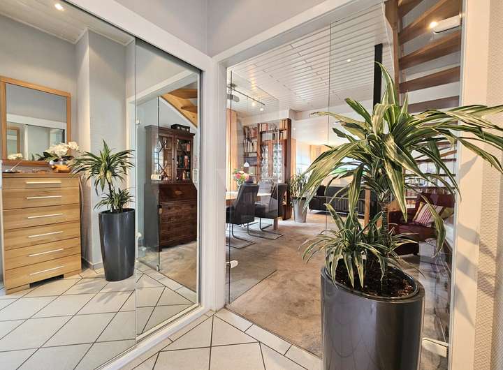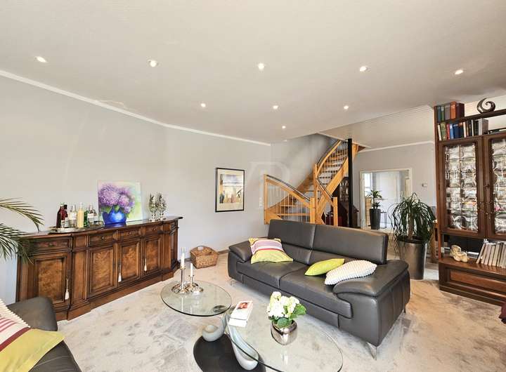 Ein besonderes Highlight sind die beiden Terrassen! Die größere von beiden erstreckt sich mit ca. 55m² über zwei Ebenen, ist komplett überdacht und lädt so in geschützter Atmosphäre zum Verweilen in Freien und geselligen Stunden ein.