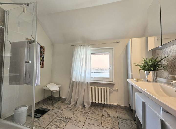 Eine Garage mit elektrischem Sektionaltor und ein weiterer Stellplatz im abgeschlossenen Hof runden das Angebot ab. Die Immobilie ist ab Dezember dieses Jahres verfügbar.
