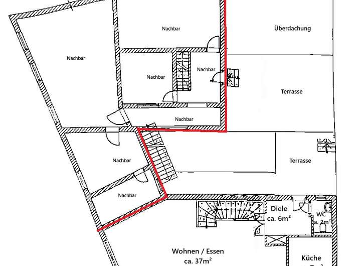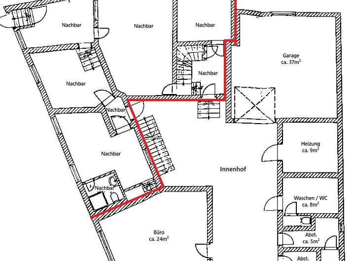 - großer Büroraum im Erdgeschoss (von außen zugänglich)