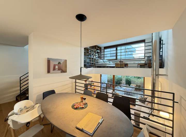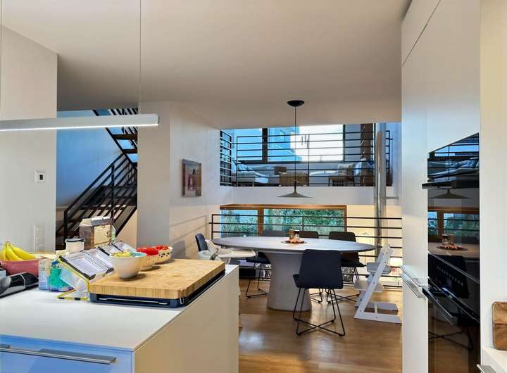 Dieses moderne Split-Level-Haus (Baujahr 2022) in Ginnheim beindruckt durch innovative Architektur, eine durchdachte Raumaufteilung und viel natürlichem Licht. Auf acht Ebenen verteilen sich private Rückzugsräume, großzügige Gemeinschaftsbereiche und hochwertige Ausstattungselemente, die hohen Wohnkomfort für Familien und Paare gewährleisten. Zu den Highlights gehören eine luxuriöse Bulthaup Einbauküche sowie eine Dachterrasse, die stimmiges Design mit Funktionalität vereint.