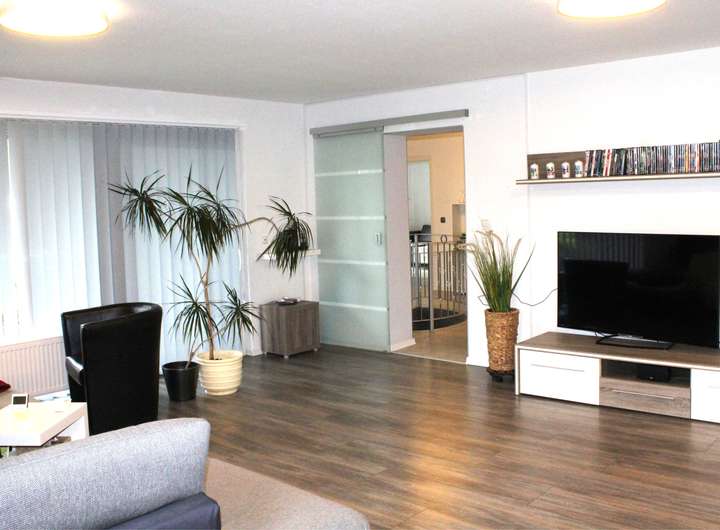 Alle Räume sind auf einer Ebene angeordnet, wodurch ein besonders komfortables und barrierearmes Wohngefühl entsteht. Die Wohnebene ist aufgeteilt in insgesamt 4 Zimmer nebst Küche, Flur, Tageslichtbad und separatem WC.