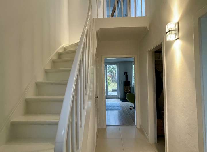 In ruhiger, idyllischer Lage von Sülldorf befindet sich dieses helle Reihenhaus mit Weitblick. Nach Norden Wiesen, Weiden und Knicks, die unter Landschaftsschutz stehen. Nach Süden kleine, nicht einsehbare Gärten. Die S-Bahn-Station Sülldorf ist in 10 min zu Fuß zu erreichen. In Sülldorf und im nahe gelegenen Blankenese finden sich bei hervorragender Infrastruktur viele Einkaufsmöglichkeiten, Kindergärten, Grund- und weiterführende Schulen, Arztpraxen, Restaurants und Kulturangebote. Die nahe gelegene Elbe im Süden, das angrenzende Naturschutzgebiet, sowie der Forst Klövensteen im Norden mit seinen Reit- und Wanderwegen bieten einen hohen Freizeitwert.