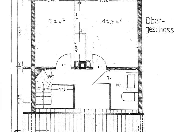 Wohnfläche 70 qm auf 2 Etagen, 3 Zimmer, 2 Bäder, Küche, Flur und Garderobe