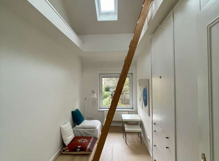 - Im 1. OG ist Echtholzparkett, helle Eichendielen verlegt