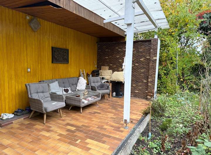 Der Bungalow ist voll unterkellert und verfügt über eine Garage und ein Gartenhaus sodass er zudem ausreichend Stauraum und Nutzfläche bietet.