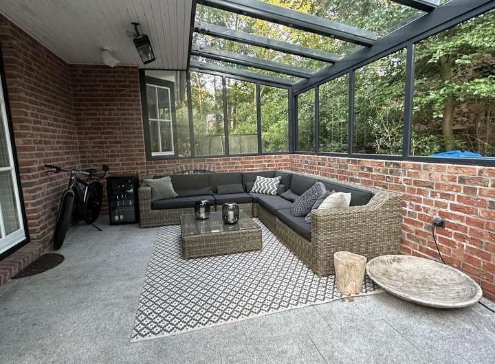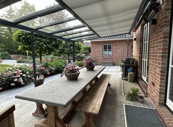 2019 wurde die Terrasse um eine überdachte Lounge mit Glaskonstruktion erweitert - perfekt zum Feiern, Entspannen oder um einfach den Sonnenuntergang zu genießen. Die Terrassenflächen rund ums Haus ermöglichen es, den Tag mit der Sonne "mitzuwandern".
