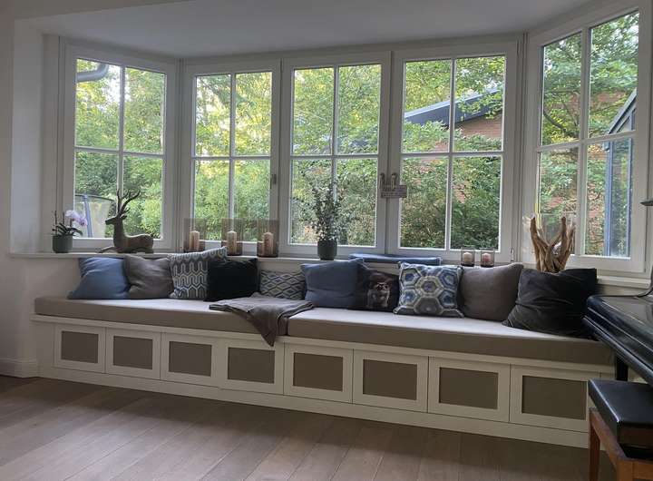 - Hochwertige Holzsprossenfenster, teils bodentief