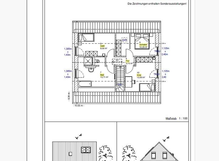 Sie können es wahlweise mit Satteldach oder Krüppelwalmdach planen.