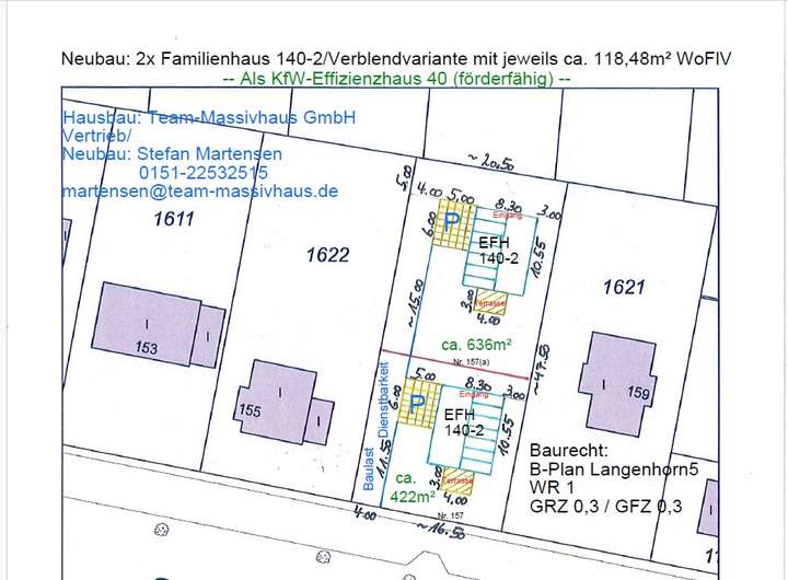 Wir beziehen uns hier auf den vorderen Grundstücksanteil mit ca. 425 m² Größe eines insgesamt ca. 1.100 m² großen Grundstücks im Hamburger Stadtteil Langenhorn.