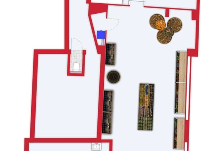 2023 wurde die Ladenfläche im Erdgeschoss saniert und zwei Läden zu einer großen Gewerbefläche zusammengefasst. Im Rückwärtigen Bereich befinden sich noch Toiletten, Personalraum und Lager.
