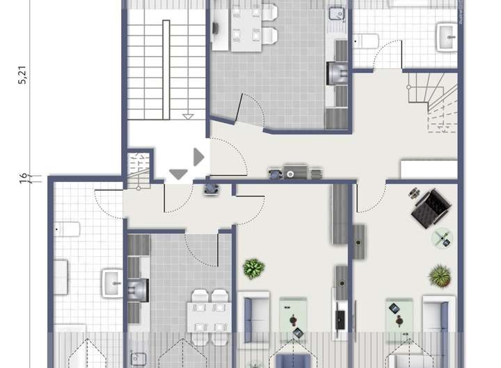 Wohnfläche ca. 437 m² (Einheiten zwischen ca. 71 und ca. 83 m² groß)