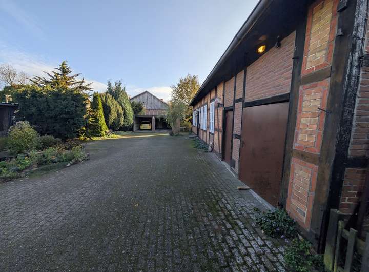 Zur Liegenschaft gehören außerdem ein alter Stall sowie zwei Garagen. Das Grundstück ist über einen Stichweg erreichbar und somit nicht direkt von der Straße einsehbar – ideal für alle, die Privatsphäre schätzen.