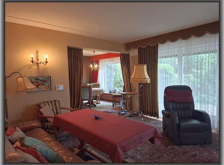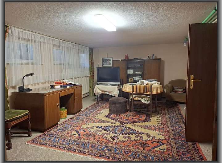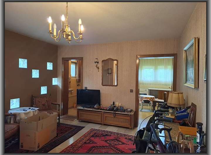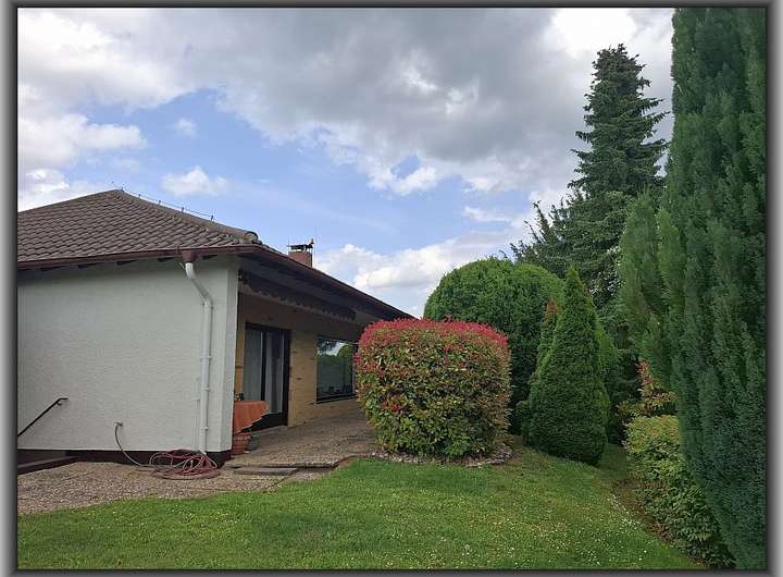 Wir haben hier einen Bungalow ( Bj.1964 ) mit teilausgebautem Untergeschoss, einer Garage, einem PKW Stellplatz, sowie Vor-, Seit- und Rückgarten. Die Wfl. von ca. 122 m² verteilt sich über 4 Zimmer, Küche, Speisekammer, großer Eingangsbereich, Gäste-WC und Bad mit Wanne und Dusche. Von 2 Zimmern aus gelangt man auf die große Südterrasse. Das Anwesen befindet sich in schöner Feldrandlage von Pfeddersheim.