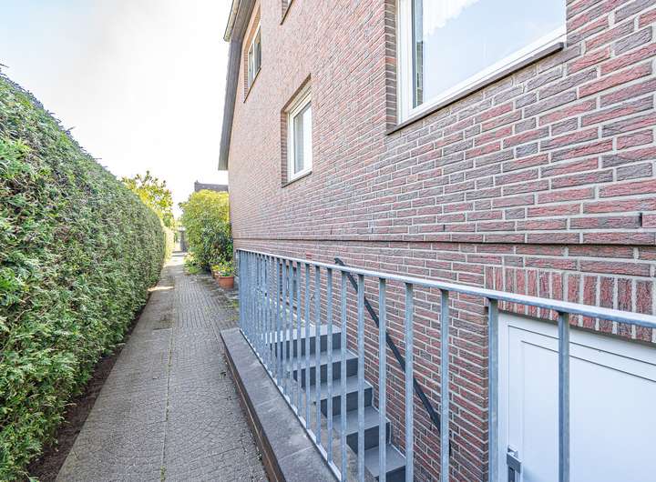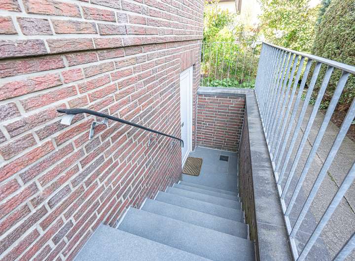 Eine massive Treppe führt in den Vollkeller, der mit einer Deckenhöhe von ca. 2,20 m vielfältig nutzbar ist. Hier stehen Ihnen ein großer beheizter Hobbyraum mit zwei Tageslichtfenster, nutzbar als Gäste- oder Arbeitszimmer, ein Heizungsraum mit Fenster und Werkbank sowie eine helle Waschküche mit zwei Fenstern zur Verfügung. Besonders praktisch ist der separate Ausgang vom Keller direkt in den Garten – ideal für den Alltag oder als Zugang nach Gartenarbeiten. Der Außenkellerniedergang wurde hochwertig mit Granit ausgeführt und unterstreicht den gepflegten Eindruck des Hauses.