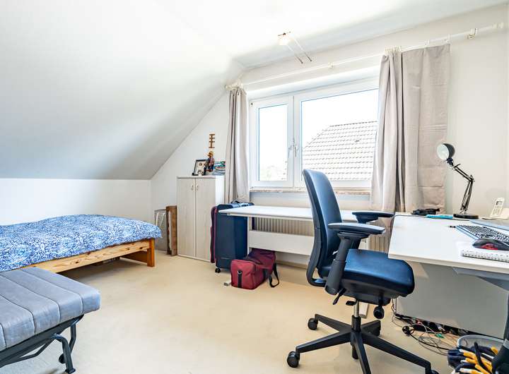 Zusätzliche Abstellfläche finden Sie im ausgebauten Spitzboden, der über eine Monarchtreppe erreichbar ist.
