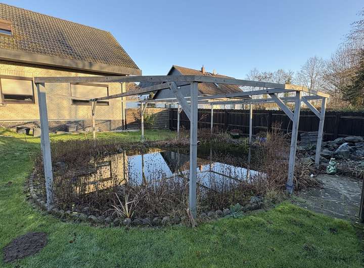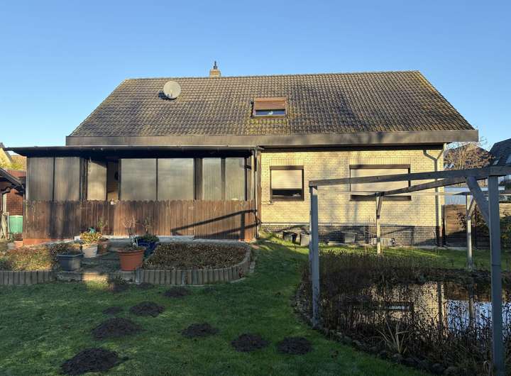 Das etwa 656 m² große Grundstück bietet vielfältige Möglichkeiten zur Entfaltung im Freien. Der liebevoll und pflegeleicht angelegte Garten lädt zu entspannten Stunden und geselligen Momenten ein. Ein besonderes Highlight ist der große Gartenteich mit einer kleinen Koi-Familie, der für eine idyllische Atmosphäre sorgt.