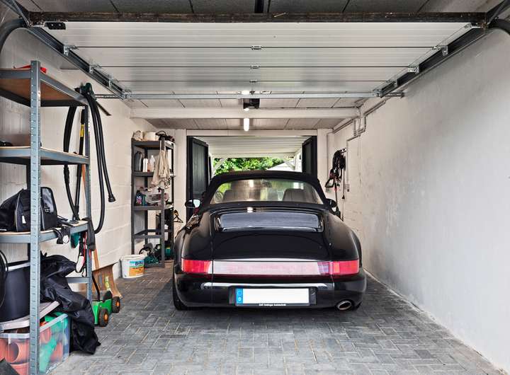Seitlich neben dem Haus findet ein Auto in der geräumigen Garage einen geschützten Platz. Durch das hintere Tor ist eine Durchfahrt zum rückwärtigen Carport möglich. Die Auffahrt bietet zudem Stellfläche für ein weiteres Auto.