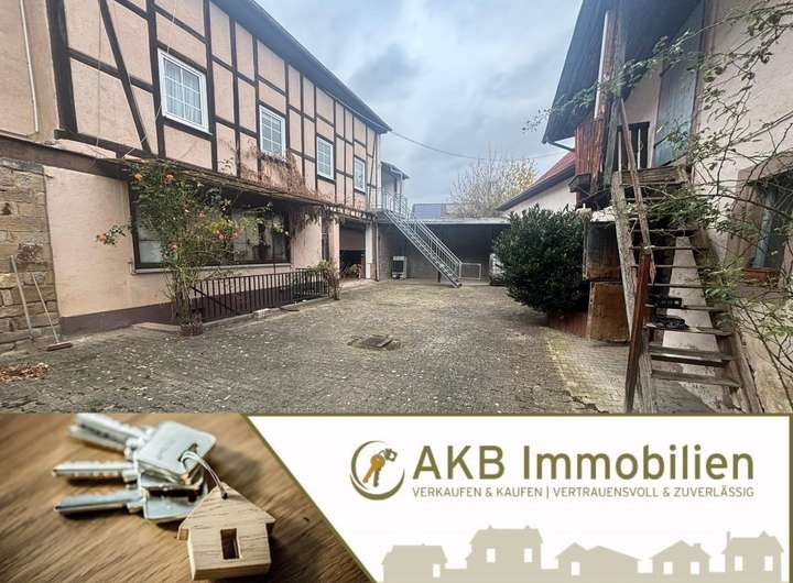 Dieses außergewöhnliche Ensemble wurde einst als Gaststätte mit angeschlossener Wohnung und großem Saal genutzt. Die historische Bausubstanz – mit Fachwerk, massiven Natursteinmauern und originalen Details – verleiht dem Anwesen einen unverwechselbaren Charakter.