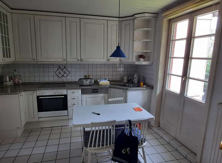 - Küche (ca. 12 m²) mit kleinem Essbereich und gepflegter Einbauküche (Geschirrspüler, Ceranfeld etc.)