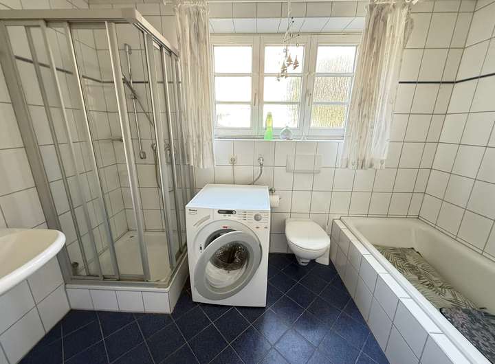 - Badezimmer II mit Badewanne, Dusche inkl. Duschkabine, Waschmaschinen-Anschluss und Fenster