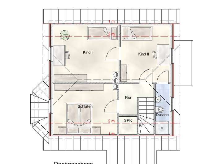 - Deckenhöhe von 2,70 m im Erd- und Dachgeschoss
