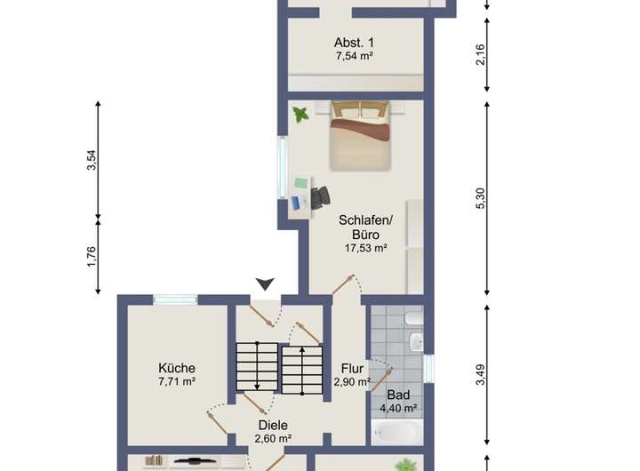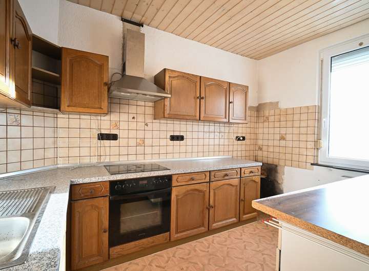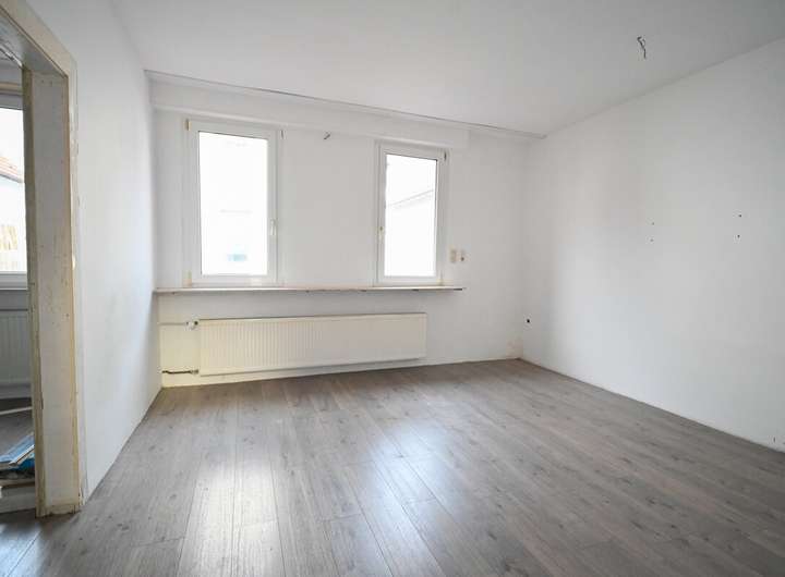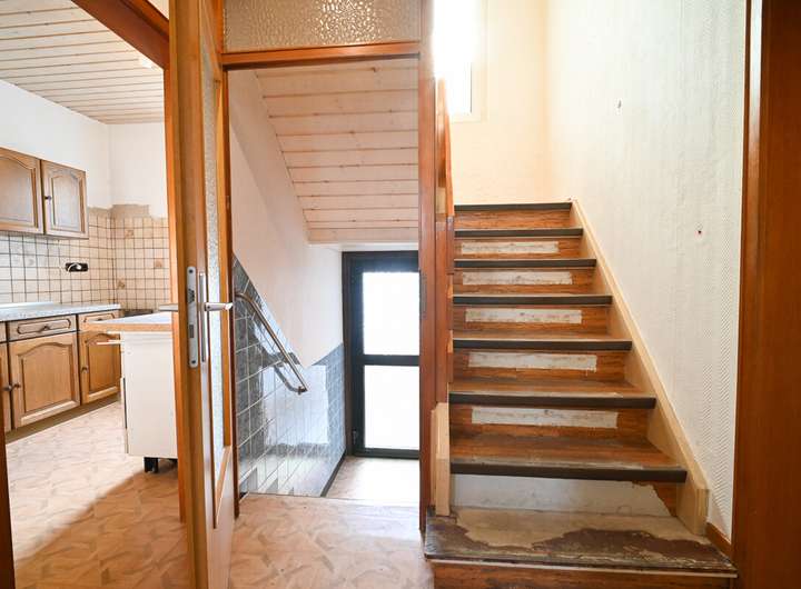 Sie betreten die Immobilie über das bauzeittypische Treppenhaus. Im Erdgeschoss finden Sie einen halb geöffneten Wohn- und Essbereich sowie direkt daneben die geschlossene Küche. Mittels Durchbruchs ließe sich hier ein großzügiger Wohn- / Ess- und Küchenbereich mit überschaubarem Aufwand herstellen.