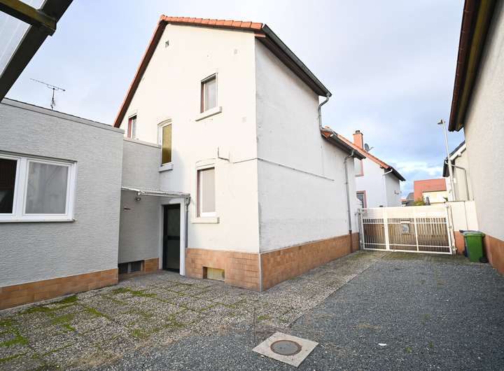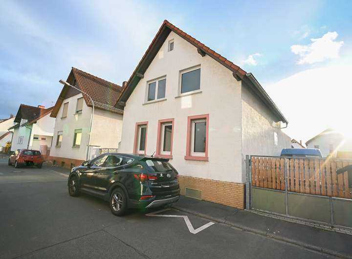 Dieses freistehende Einfamilienhaus in einseitiger Grenzbebauung befindet sich in zentrale Lager von Pfungstadt entlang einer Nebenstraße.