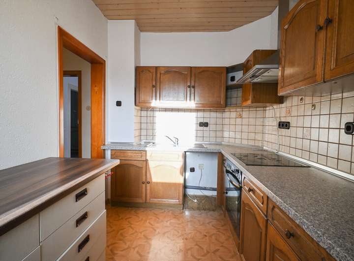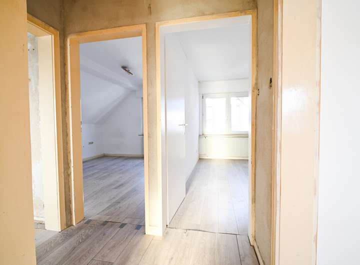 Über die massive Holztreppe gelangen Sie in die Räumlichkeiten im Dachgeschoss. Hier finden Sie eine weitere Küche (auch als Schlafzimmer nutzbar), zwei Schlafzimmer sowie ein im Rohbau befindlicher Raum der einst zu einem Badezimmer umgebaut werden sollte.