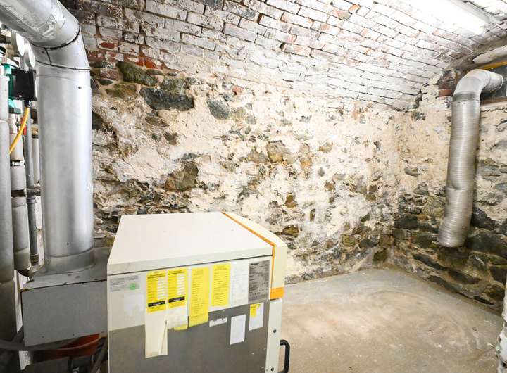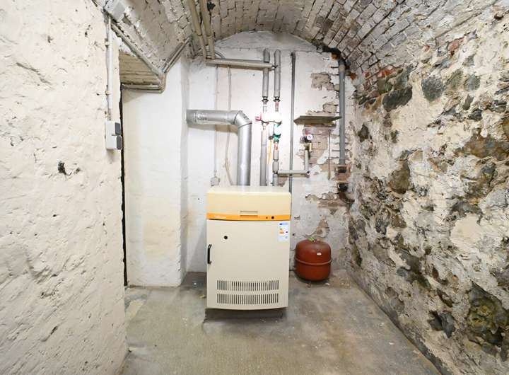 Der Gewölbekeller hat eine beachtliche Raumhöhe und wurde aus Natursteinen errichtet. Hier stehen insgesamt 4 Kellerräume zur Verfügung, wovon ein Raumteil als Aufstellort für den Gasheizkessel dient.
