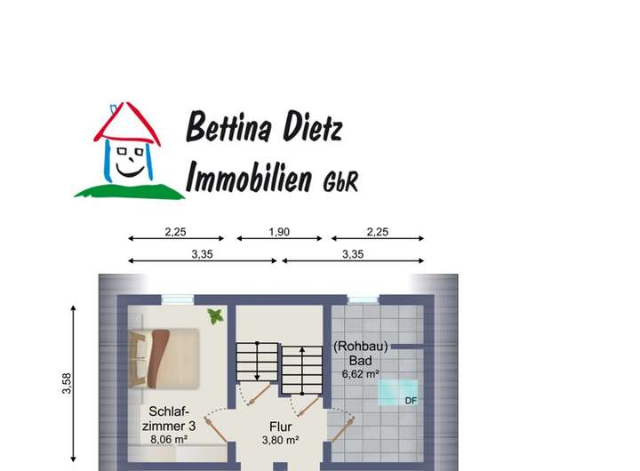 Darüber hinaus gibt es auf dieser Etage noch ein Duschbadezimmer sowie ein weiteres Zimmer im Anbau, welches sie über einen Zwischenflur erreichen.