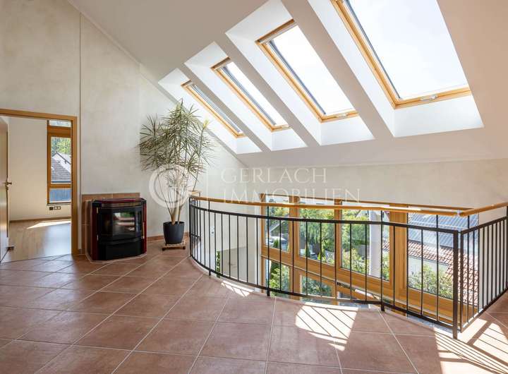 Galerie mit Kaminofen, Schlafzimmer mit Ankleide und Balkon, 3 Schlaf-/Kinderzimmer, Badezimmer mit Dusche und Wanne