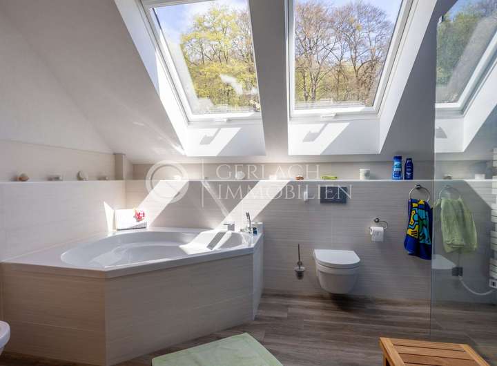 Die zweite Einheit im Gartengeschoss ist derzeit für eine gewerbliche Nutzung genehmigt, erfüllt jedoch bereits alle baulichen Anforderungen für Wohnraum. Sie bietet also die Möglichkeit, diese Fläche zukünftig auch als Wohnraum umzuwandeln. Mit eigenem Eingang, Bad, Küchenzeile und Blick ins Grüne eignet sie sich perfekt für ein Homeoffice mit Kundenkontakt, eine Praxis, ein Atelier – oder auch als unabhängiger Bereich für Gäste oder erwachsene Kinder.