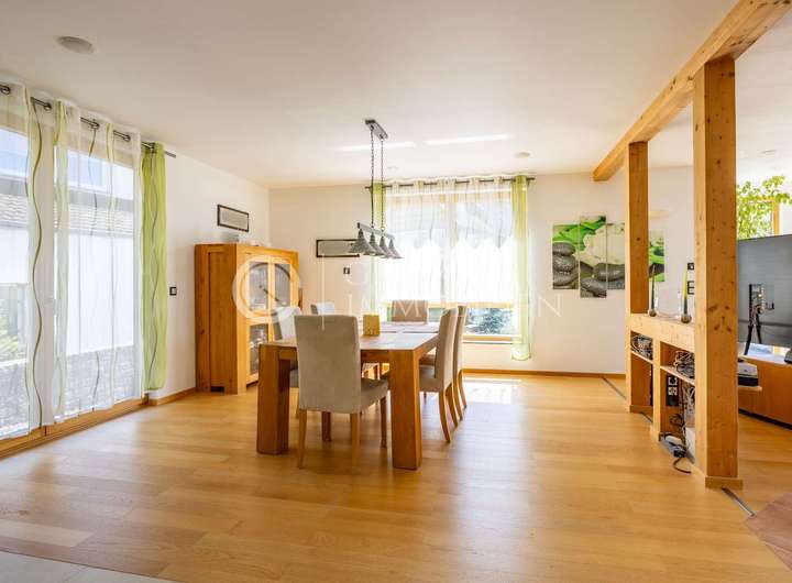 Die Ausstattung des Hauses zeigt Liebe zum Detail und einen hohen technischen Anspruch: energieeffiziente Haustechnik mit BUS-System, Fußbodenheizung, Kamin- und Pelletofen, Photovoltaik und Solarthermie, zentrale Staubsaugeranlage, Lüftungssystem, Zisterne, Wallboxen und vieles mehr. Alles ist auf Komfort und Nachhaltigkeit ausgelegt – eine Kombination, die man selten findet.