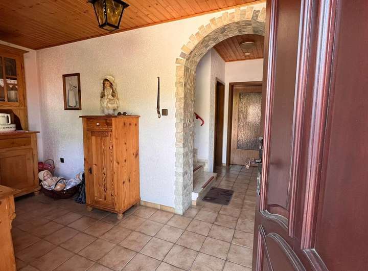 bietet und einen herrlichen Blick in den großzügigen, nach hinten gelegenen Garten ermöglicht. Direkt am Wohnhaus befinden sich drei Garagen sowie eine 2008 errichtete Halle mit einer Fläche