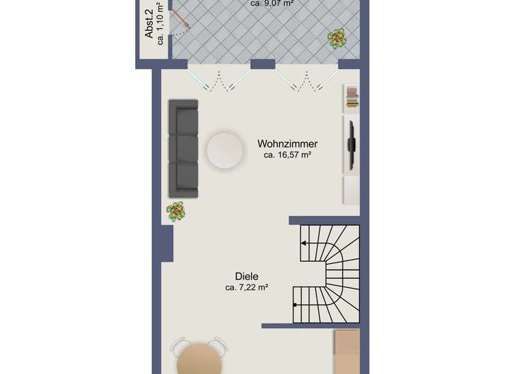 Nebenkosten: ca. 2 % Notar- und Gerichtskosten sowie 5,5 % gesetzlicher Grunderwerbsteuer