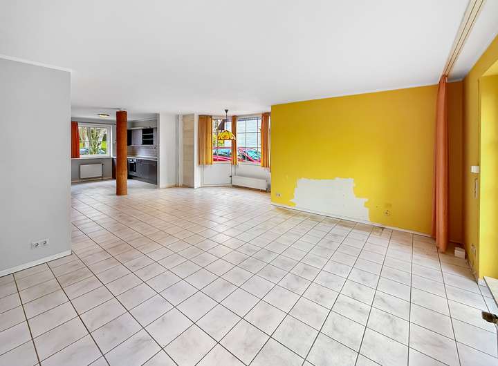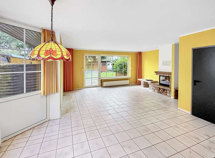 - Offen gestalteter Wohn- und Essbereich mit Erker und Kamin