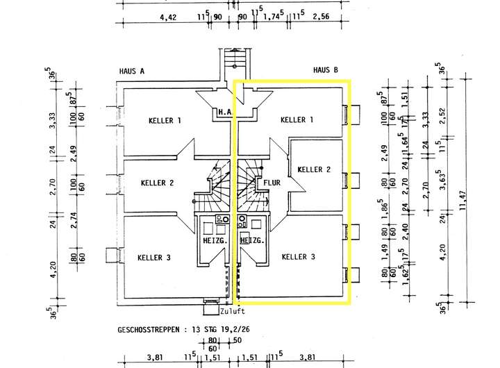 Nutzfläche: ca. 71,35 Quadratmeter (Keller ca. 50 Quadratmeter, Bodenraum ca. 21,35 Quadratmeter)