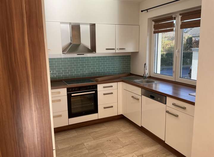 Die hochwertige Küche fügt sich harmonisch ins moderne Ambiente ein und bietet den perfekten Ort für Genussmomente mit Familie und Freunden.