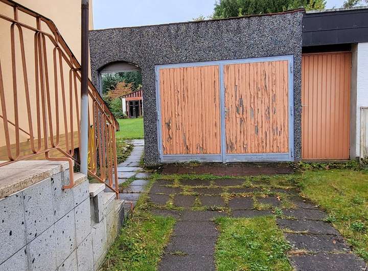 Garage - Einzelgarage mit zwei Stellplätzen davor.