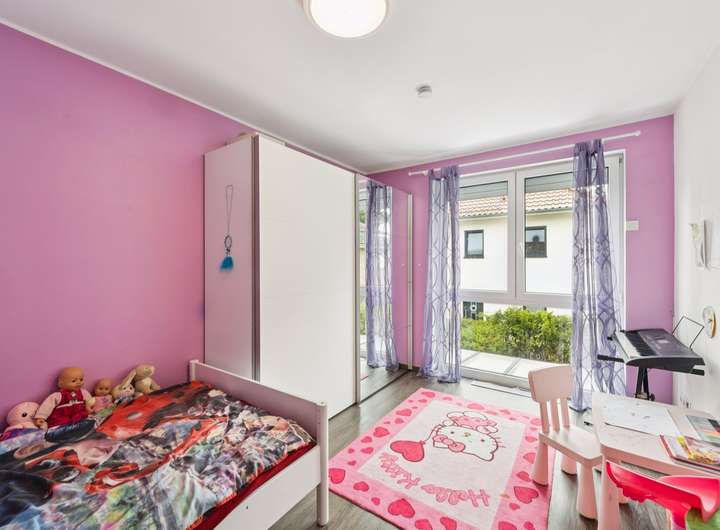Im 2. Obergeschoss befinden sich zwei Zimmer, die flexibel als Schlaf-, Kinder- oder Arbeitszimmer genutzt werden können. Ein Highlight ist der Balkon, der von einem der Zimmer aus zugänglich ist und einen schönen Ausblick in den Garten bietet.