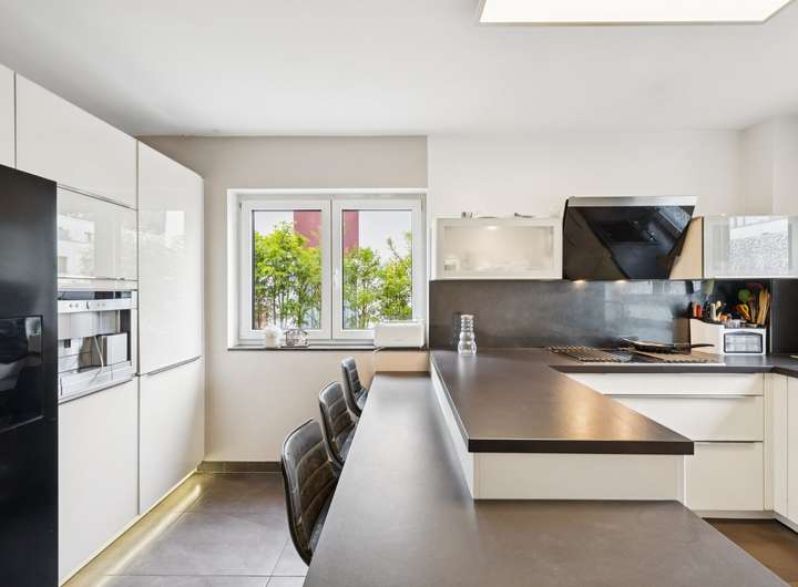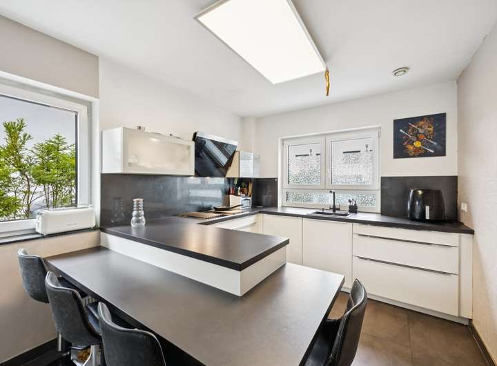 Die moderne Küche ist mit hochwertigen Geräten ausgestattet und bietet ausreichend Platz für kulinarische Entfaltungen.