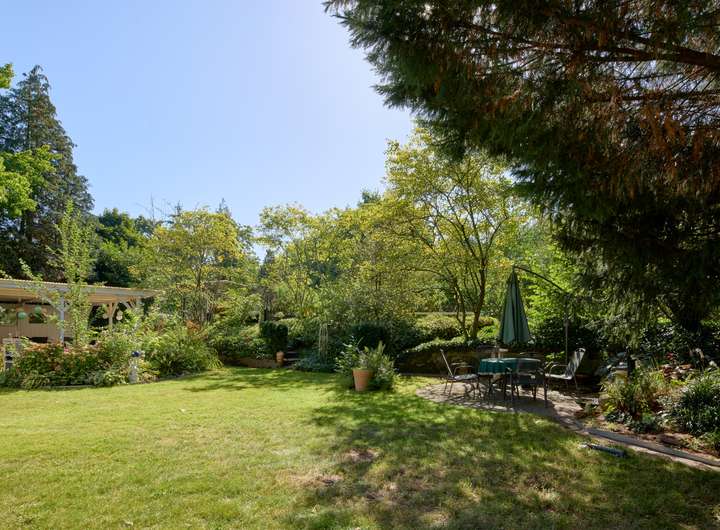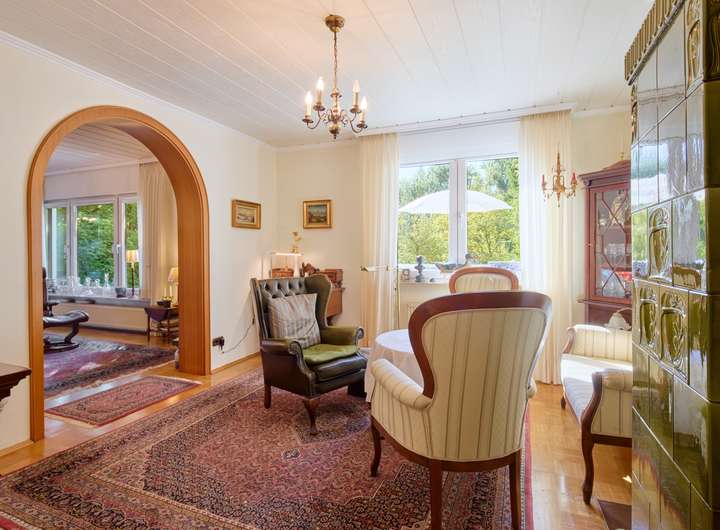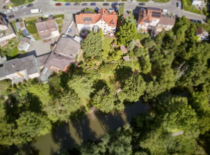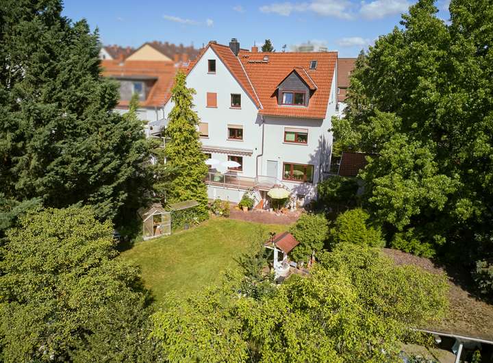 Dieses großzügige Mehrfamilienhaus in Hanau vereint Wohnkomfort über mehrere Etagen mit einem einzigartigen Grundstück direkt an der Kinzig. Im Erdgeschoss erwartet Sie ein einladender Grundriss mit Kaminzimmer samt originalem Jugendstil-Ofen aus Berlin, einem hellen Wohnzimmer sowie einem Esszimmer mit Zugang zum Wintergarten und zur Terrasse. Eine separate Küche, ein Tageslichtbad, ein Gäste-WC sowie ein Schlafzimmer runden diese Etage ab. Das Obergeschoss ist ähnlich aufgebaut wie das Erdgeschoss und bietet zusätzliche Wohnräume sowie den Zugang zu einem sonnigen Balkon mit Blick in den Garten. Im Dachgeschoss befinden sich zwei Wohneinheiten mit ähnlichem Grundriss. Beide bieten ein Wohnzimmer, ein Schlafzimmer, einen Flur sowie ein Badezimmer mit Dusche. In einer Einheit ist eine Küche mit Essecke vorhanden. Der zweite Grundriss war ursprünglich ebenfalls für eine Küche vorgesehen; der betreffende Raum wird aktuell jedoch als Ankleidezimmer genutzt. Dachschrägen und sichtbare Holzbalken verleihen den Räumen besonderen Charme. Ein ausbaufähiger Dachboden ergänzt das Raumangebot und bietet flexible Nutzungsmöglichkeiten. Das Haus ist zudem voll unterkellert und schafft damit zusätzlichen Stauraum. Neben Abstell- und Nutzflächen befindet sich hier auch ein weiteres Gäste-WC. Ein echtes Highlight ist das weitläufige Grundstück von ca. 1.800 m²: Mehrere Sitzplätze, ein idyllischer Gartenteich sowie ein liebevoll gewachsener Baumbestand schaffen ein einzigartiges Ambiente. Vom hinteren Bereich des Grundstücks gelangen Sie direkt an die Kinzig – inklusive eigenem, filigranen Steg. Zum Anwesen gehört außerdem ein Nebengebäude mit drei Garagenstellplätzen sowie ein praktischer Fahrradraum. Die Immobilie bietet insgesamt rund 13 Zimmer, davon vier Schlafzimmer, vier Badezimmer und zwei Gäste-WCs, und eignet sich ideal sowohl zur Eigennutzung als auch zur Vermietung. Die attraktive Lage in Hanau-Nordwest, direkt an der Kinzig, macht dieses Anwesen zu einem besonderen Angebot mit Seltenheitswert.