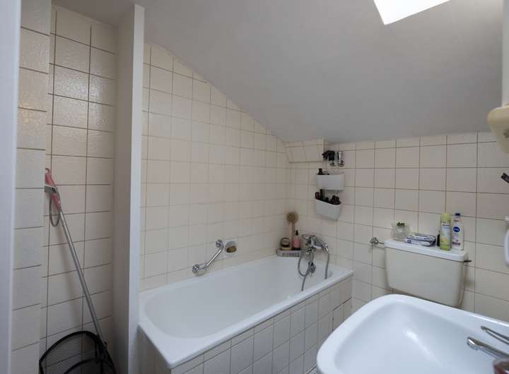 Die beiden Bäder (eins im Obergeschoss, eins im Dachgeschoss) bieten Funktionalität und Ausbaupotenzial für eine moderne Neugestaltung. Ein separates Gäste-WC im Erdgeschoss ergänzt das Raumangebot sinnvoll.